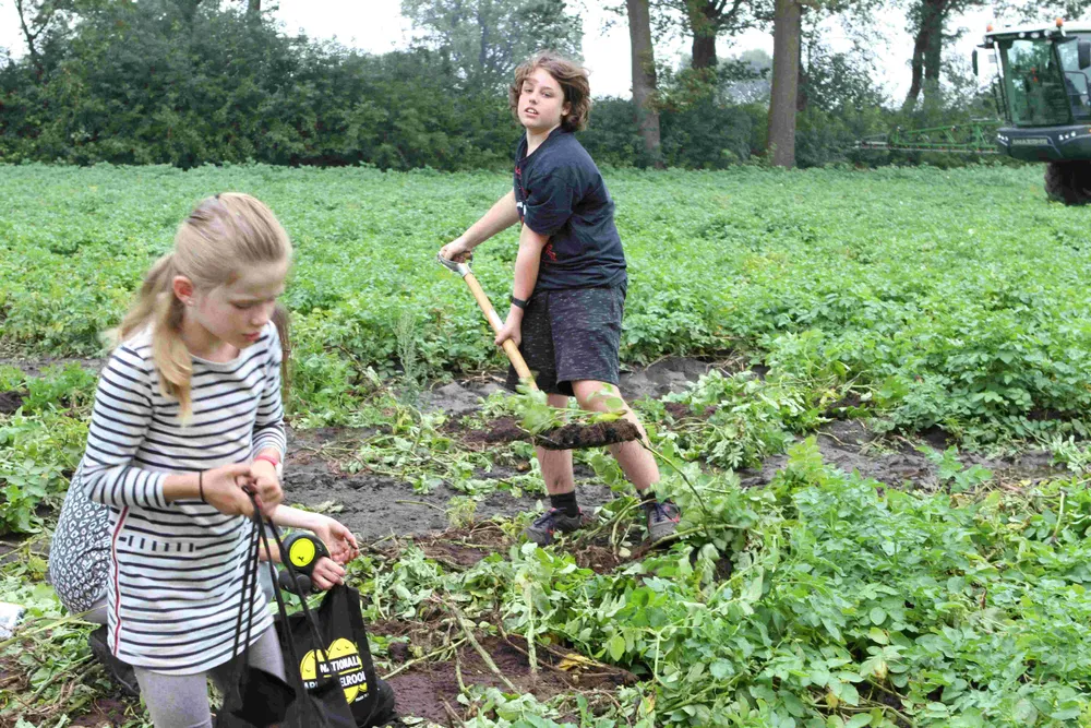 De Nationale Aardappelrooidag was voor de Gebroeders van Gerwen reden om op 2 september hun akkers open te stellen. Het is het enige Brabantse bedrijf dat meedeed aan het landelijke evenement. Waar het bedrijf normaal met een enorme machine de aardappels rooit, werden ze zaterdag 2 september met de hand gerooid. Jong en oud raapte dat het een lieve lust was. “Het is nu de tijd om de vroege aardappels te rooien. De rooiperiode loopt door tot in november”, vertelt Sanne van Gerwen. Het is voor het bedrijf een bijzonder jaar. “Het voorjaar was supernat. We hebben toen veel moeite moeten doen om de aardappels te poten. Vervolgens moesten we door de vele regen een deel van het perceel opnieuw poten. Daarna kregen we een heel droge periode. Toen was het veld zo droog dat we moesten beregenen. We zijn dus wel blij met de regen van de afgelopen periode.”
