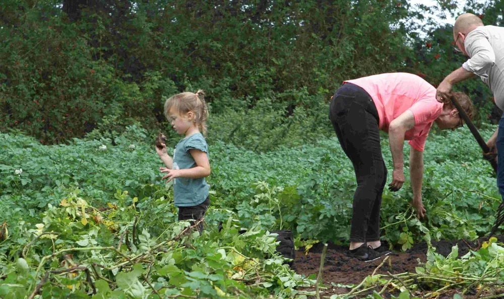 Zaterdag waren er van 11.00 tot 16.00 uur constant mensen aardappelen aan het rapen. Die kwamen onder meer uit Wintelre en Veldhoven, maar ook uit Son en Breugel. Ook een familie uit het Zuid-Hollandse Voorhout wist Wintelre te vinden vanuit hun campingplaats in Bergeijk.