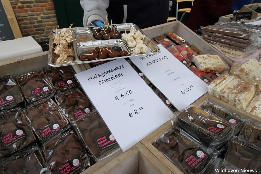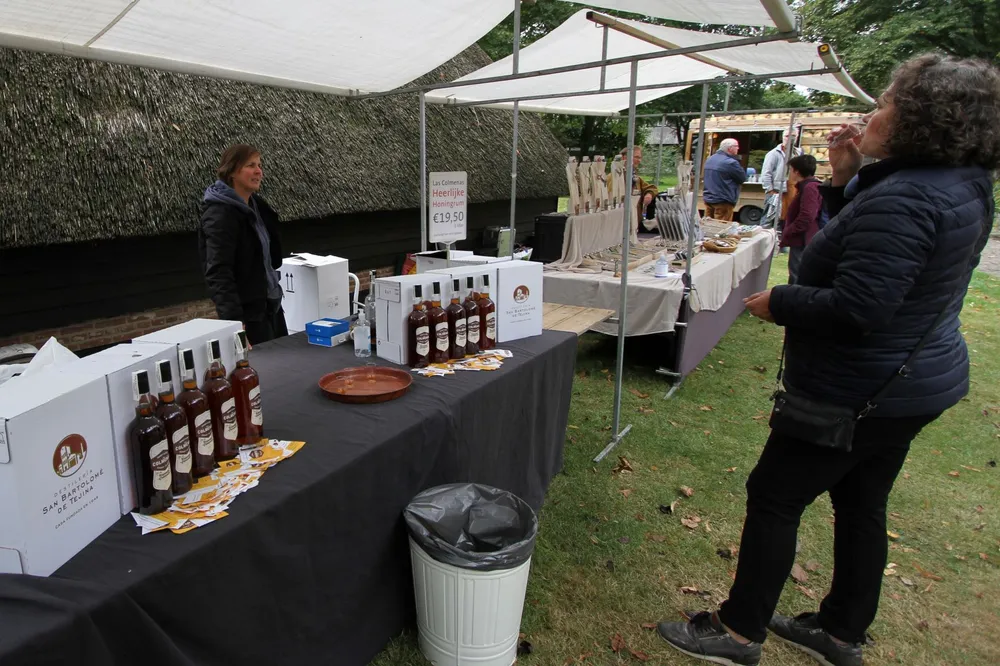 Er valt ook voldoende te eten. Zo is er Indonesische saté en er staat een kraam van Home Made Chocolate uit Coevorden. “Mensen komen van heinde en verre voor onze slagroomtruffels”, zegt een medewerker. Ook is er een kraam met honingrum (20% alcohol) die wordt gemaakt op de Canarische Eilanden.