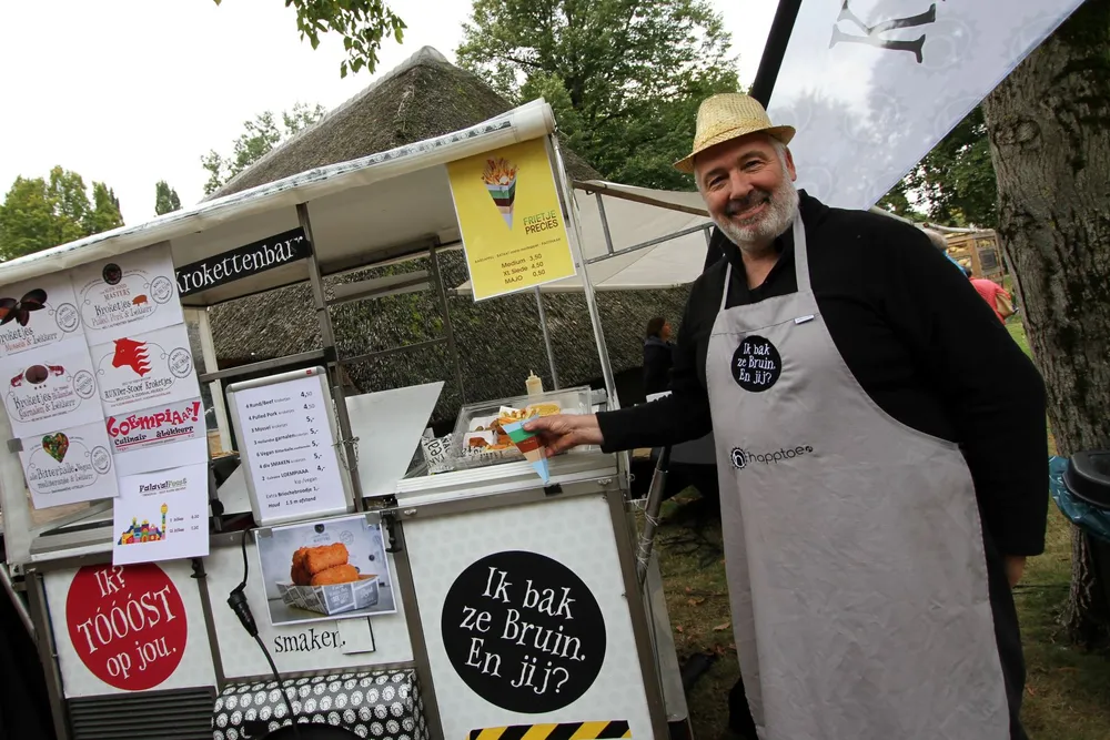 Gerard de Groot van Happtoe uit Harmelen bakt ze bruin in Veldhoven. Van de producten van aardappelteler Jacob van den Borne uit Reusel maakt hij een lekker frietje. “Een derde is aardappel, een derde is pastinaak en een derde is batat (zoete aardappel). Van den Borne noemt het het groenste frietje van Nederland. Met weinig zout en algenpoeder maak ik er het lekkerste frietje van”, zegt De Groot. Ook heeft hij bijzondere kroketjes in de aanbieding.