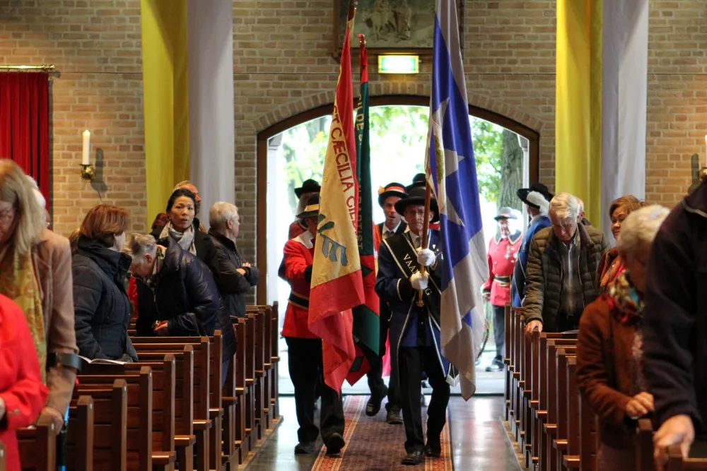 De vier Veldhovense gilden waren met trom en vaandel aanwezig. Organist Karel van den Hurk en het Con Brio- en Broekwegkoor onder leiding van Ine van Beek verzorgden de muzikale omlijsting. Dirigent Cor Jolie kon vanwege ziekte niet aanwezig zijn.