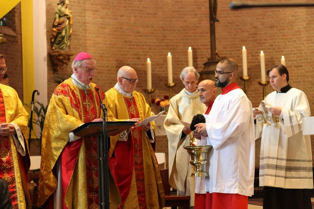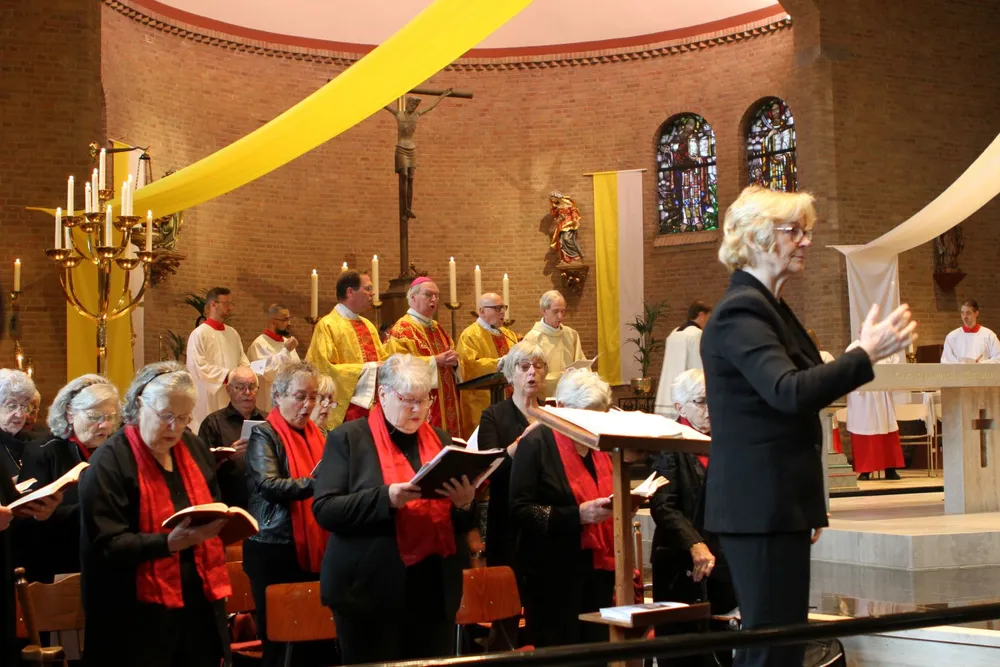 Altaarbouwer Wijngaards was een van de vele aanwezigen tijdens de ruim twee uur durende indrukwekkende dienst waarbij Mgr. De Korte de hoofdcelebrant was. Concelebranten waren pastoor Frank As, kapelaan Jeroen Beekman en em. pastoor Gerard de Gilde.