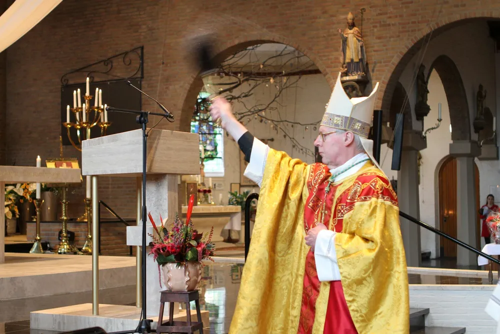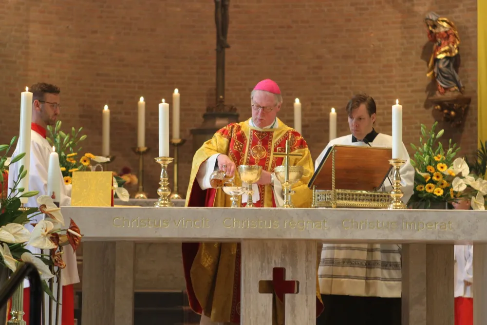 Tijdens een drukbezochte pontificale eucharistieviering is zondag in de Christus Koningkerk het nieuwe altaar gewijd door Mgr. Gerard de Korte.