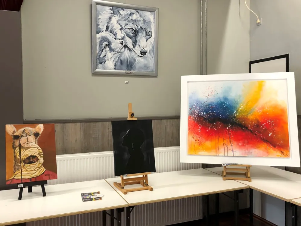 Een aantal kunstenaars van de kunstuitleen exposeerde in totaal 154 kunstwerken. Die waren verdeeld over een aantal ruimtes in dorpscentrum ‘d Ouw School te bekijken. Voor bezoekers was er een handige looplijst met daarop het getoonde werk, de kunstenaar, de afmetingen en de prijs. De honderden bezoekers genoten onder meer van verschillende vormen van schilderkunst, glaskunst, mixed media, en werken van paverpol en zink.