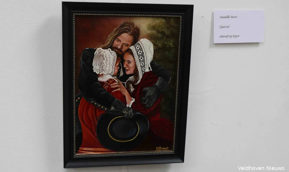 Een opvallend werk is dat van Danielle Borst. Het is op deze expositie het enige schilderij in olieverf op koper. Haar zus Francisca is op de expositie en vertelt dat ze in het Rijksmuseum een schilderij van circa 500 jaar oud op koper zag. “Het zag nog helemaal niet craquelé uit. In de coronatijd heb ik mijn eerste schilderij op koper gemaakt. Na mij is mijn zus Danielle er ook mee begonnen. In de wintermaanden schilderen we elke week samen met onze vader”, vertelt de Veldhovense.