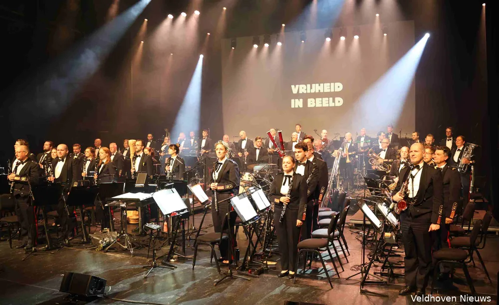 Voor het concert ‘Vrijheid in beeld’ waren de Veldhovense veteranen uitgenodigd alsmede Veldhovense vrijwilligers. Zij genoten van de muziek en van de indrukwekkende filmbeelden van filmmaker Frank van Osch. Voor de film bezocht Van Osch met enkele orkestleden hun familieleden die aangrijpende oorlogsverhalen vertelden. “Het is de hele oorlog angstig geweest”, vertelt de oma van een van de muzikanten. “Oorlog is verschrikkelijk. We moeten van elkaar houden en elkaar helpen”, zegt een familielid van een andere orkestlid.