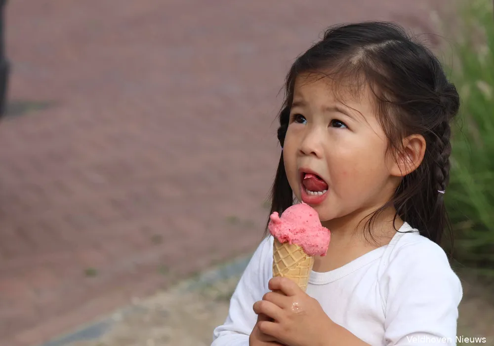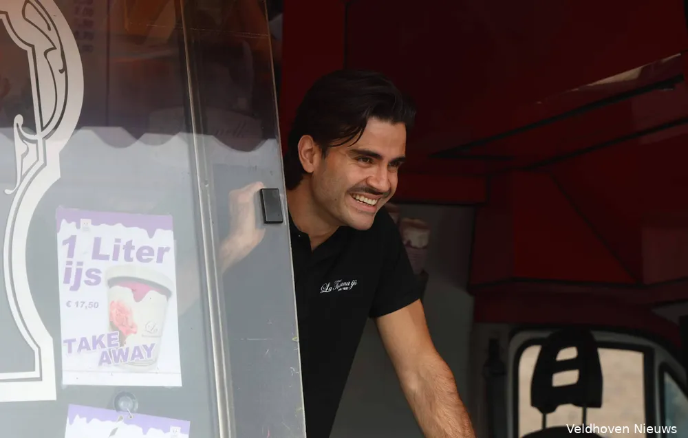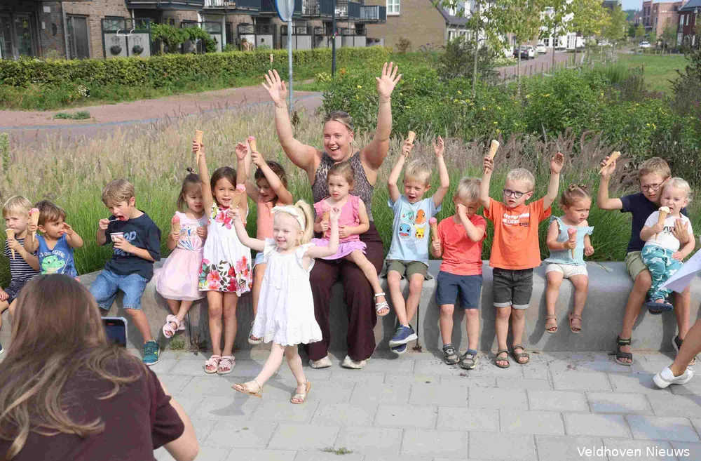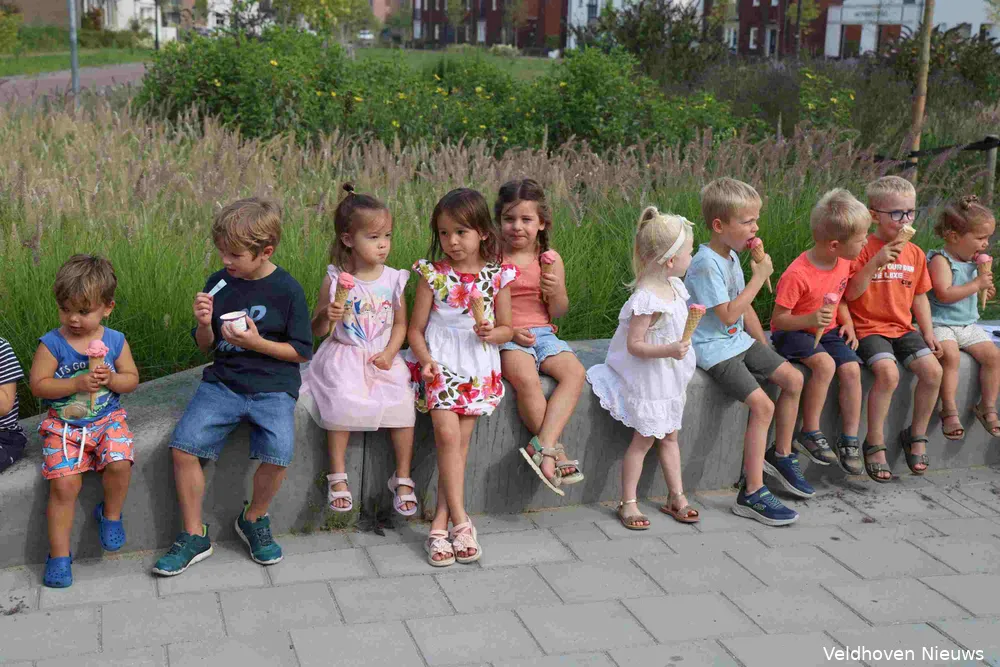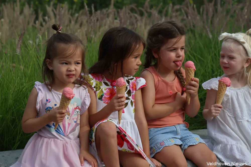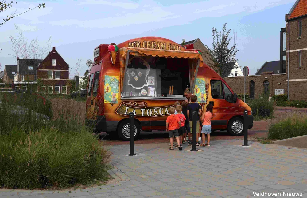 Om 10.15 uur rijdt de kleurrijke ijswagen van La Toscana uit Eindhoven de parkeerplaats op van de locatie Zilverackers in Veldhoven van Nummereen Kinderopvang. De bus is voorzien van een opvallende poster met de tekst ‘Van 35 jaar plezier krijg je trek in ijs’. En dat was zeker op 14 augustus het geval als de temperatuur de 30 graden ruim overstijgt.