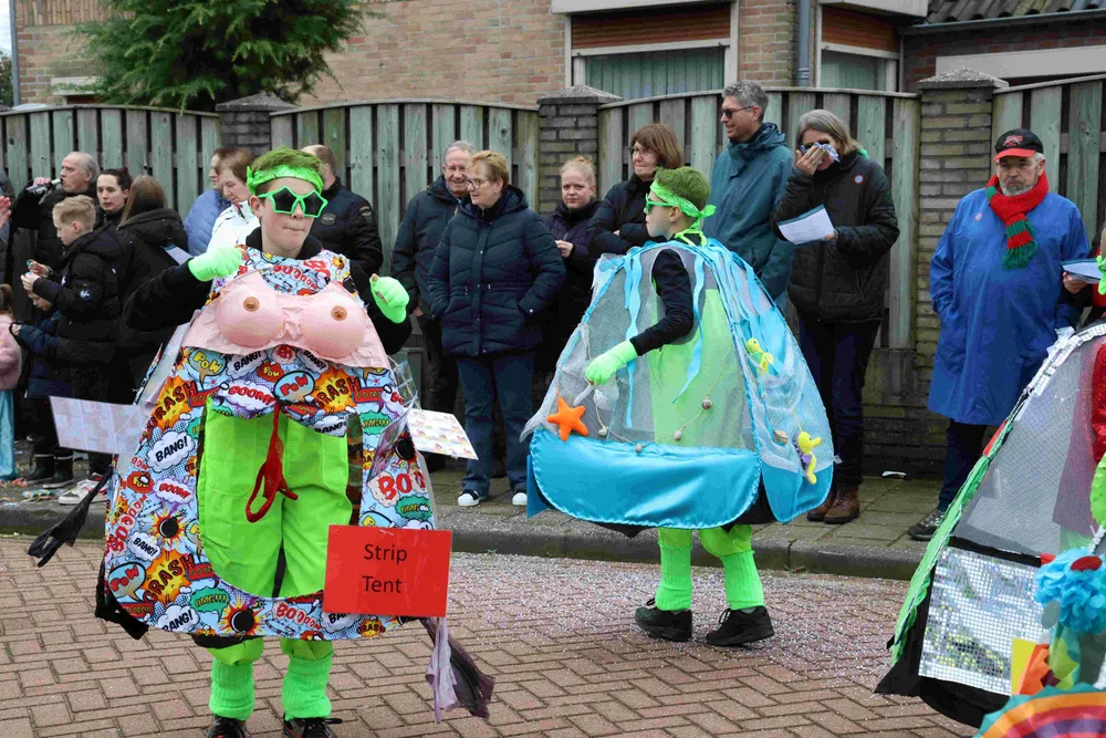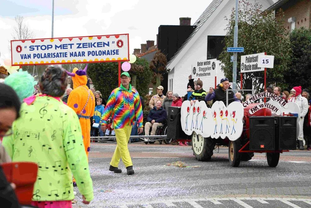 De kleurrijke carnavalsoptocht in Veldhoven trok zondag veel publiek. Bijgaand een foto-impressie van de bonte stoet en de ook kleurrijke toeschouwers.