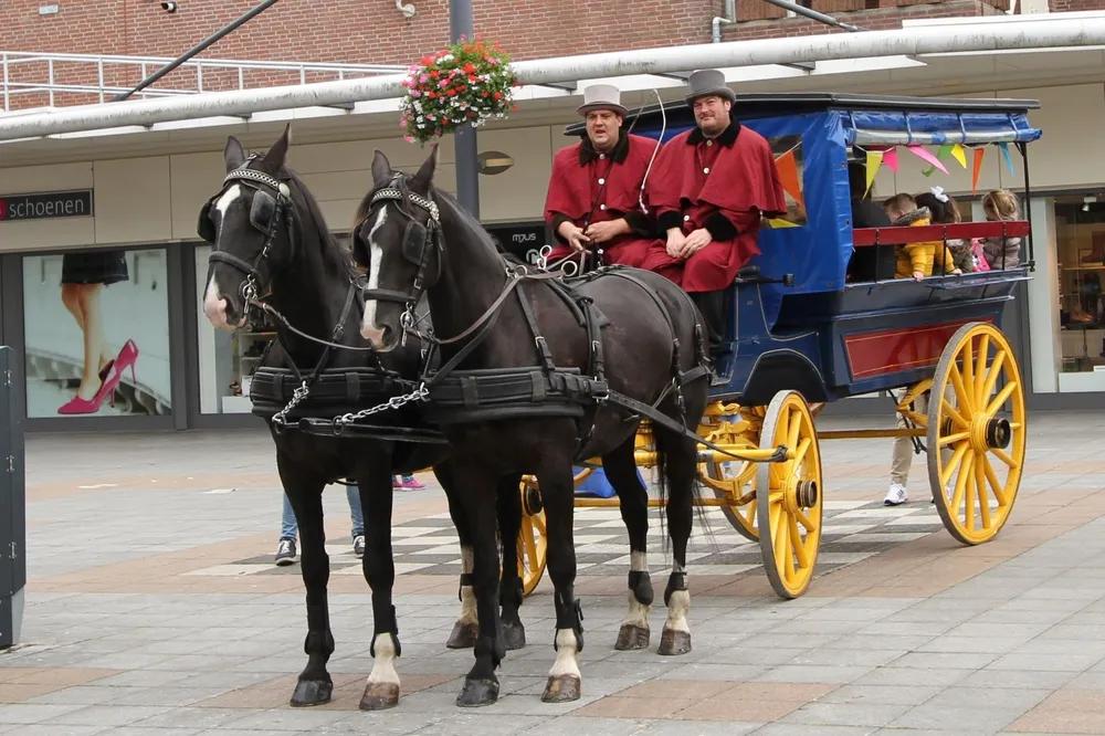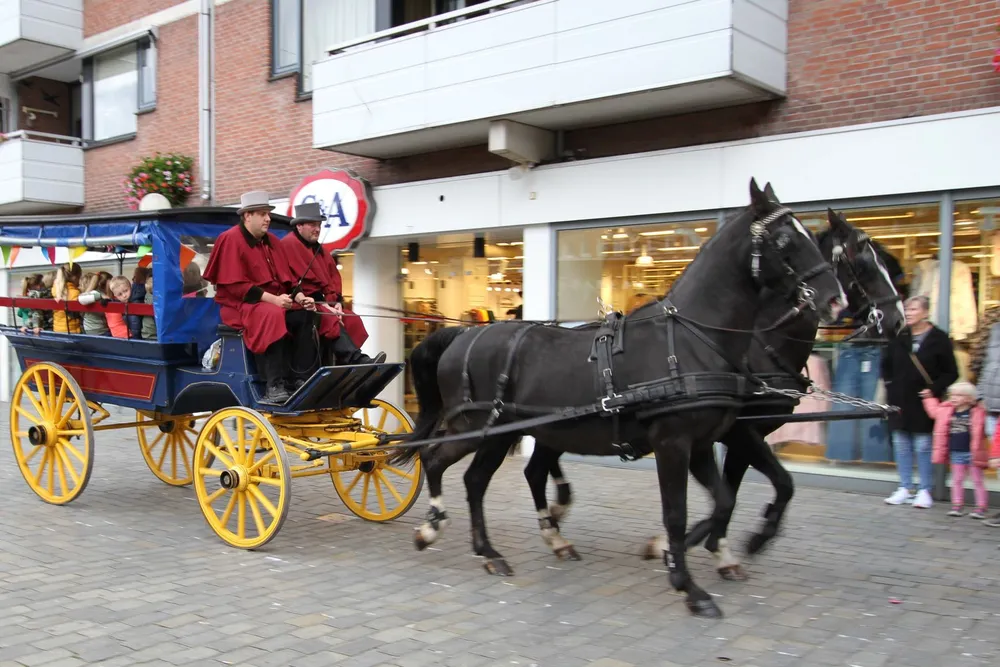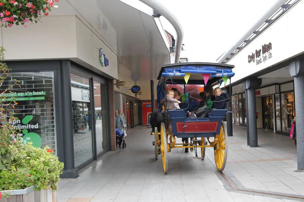 Op het Meiveld waanden kinderen zich voor even een cowboy of cowgirl. In een opblaasbare arena streden ze met zessen tegelijk op een opgeblazen paard om de winst. Voor de winnaar wachtte een greep in een grabbelton. Ook een ritje met een huifkar behoorde tot de mogelijkheden. Twee donkere paarden voor een kleurrijke koets met twee prachtig uitgedoste menners op de bok maakten een ritje door het winkelcentrum tot een feest.