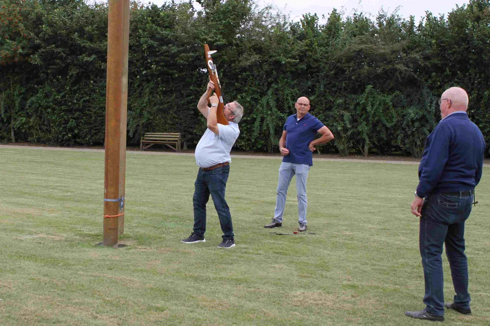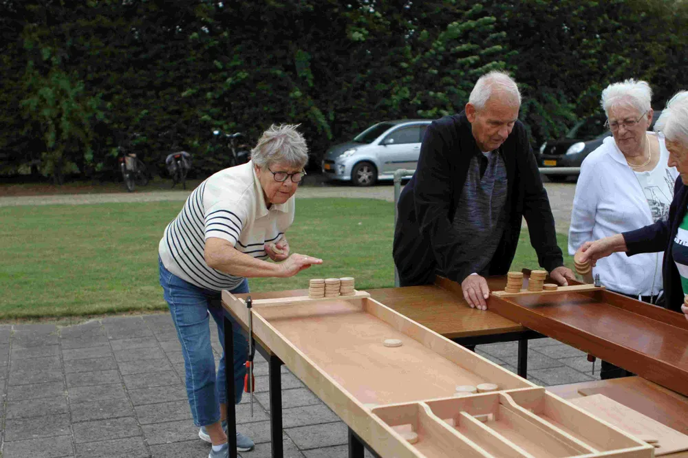 Kaarten, keuvelen en kienen, vergeet het maar bij de KBO in Oerle. Gekaart werd er donderdag 17 augustus nog wel, maar de senioren leefden zich deze dag ook uit in minder alledaagse disciplines. Zo toonden ze hun kunnen in onder meer sjoelen, jeu-de-boules, kruisboogschieten, buksschieten en bijlgooien. Na afloop van de gedane inspanningen genoten de 140 aanwezigen van een voortreffelijke barbecue.