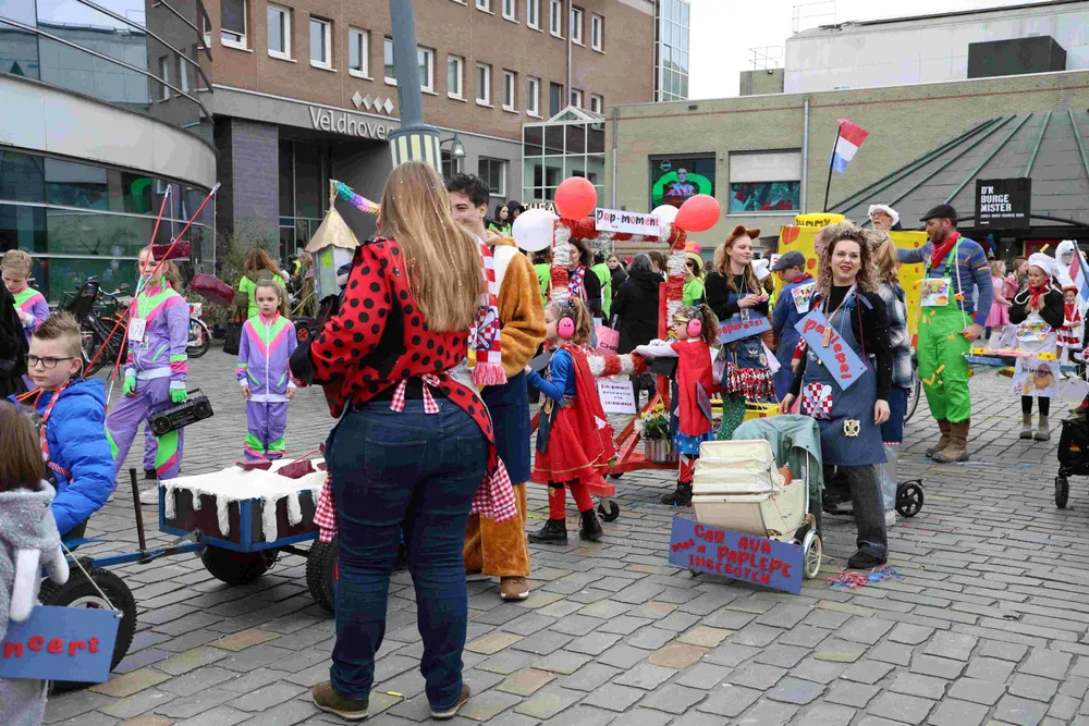 De kinderoptocht trok zaterdag 10 februari weer door Veldhoven. Het eindpunt was het Meiveld waarna in Theater de Schalm de prijsuitreiking plaatsvond.