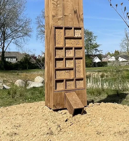 Het onderkomen is onderin voorzien van een bijenhotel. Bovenin