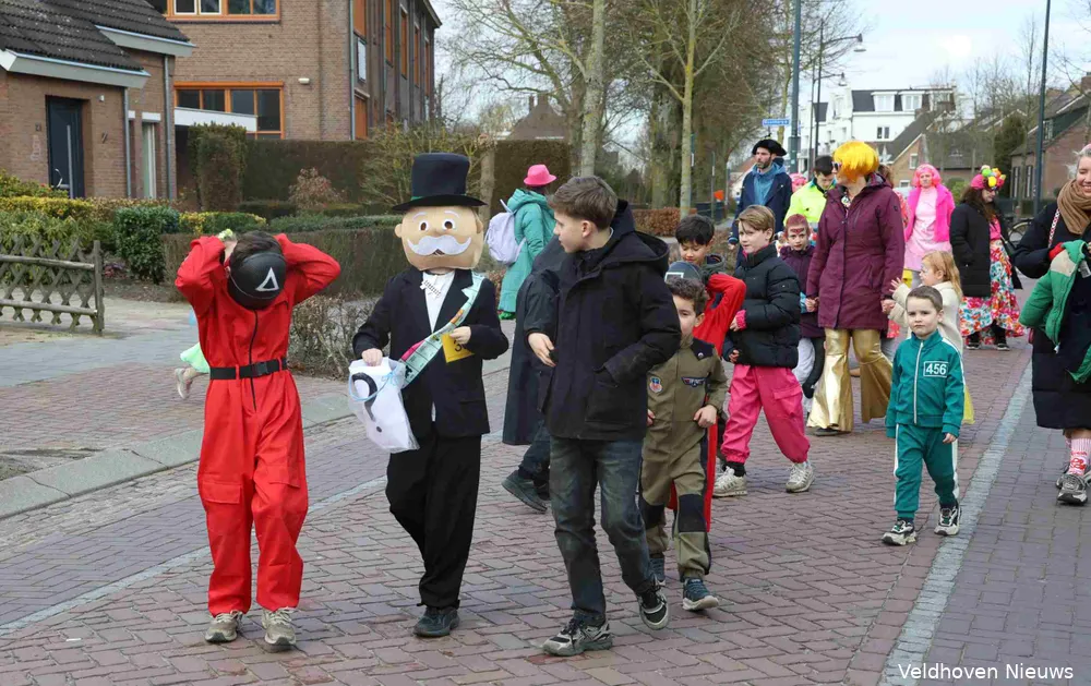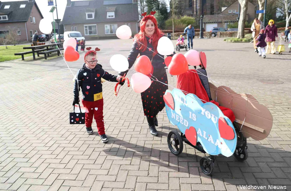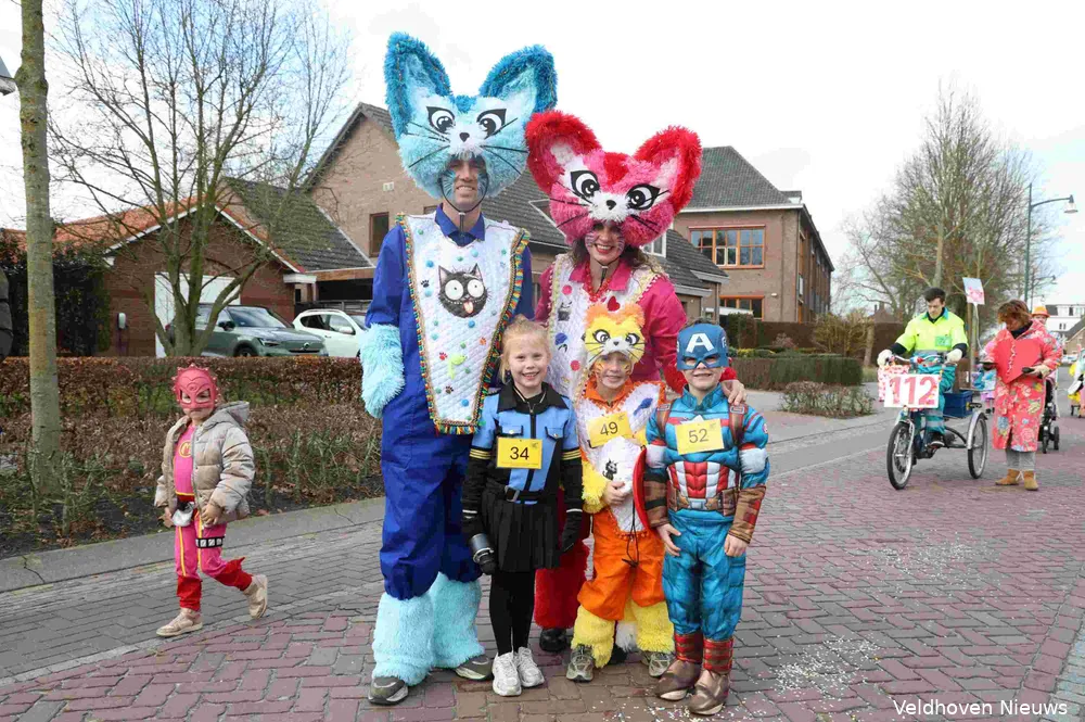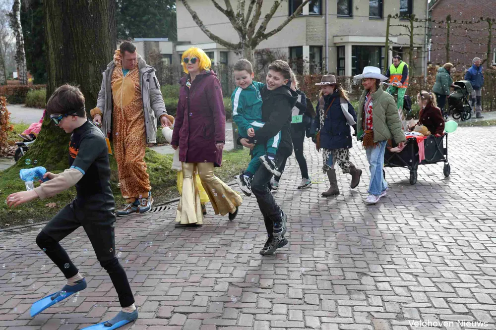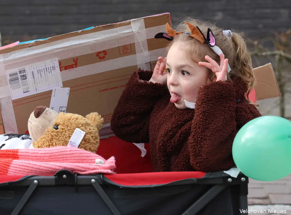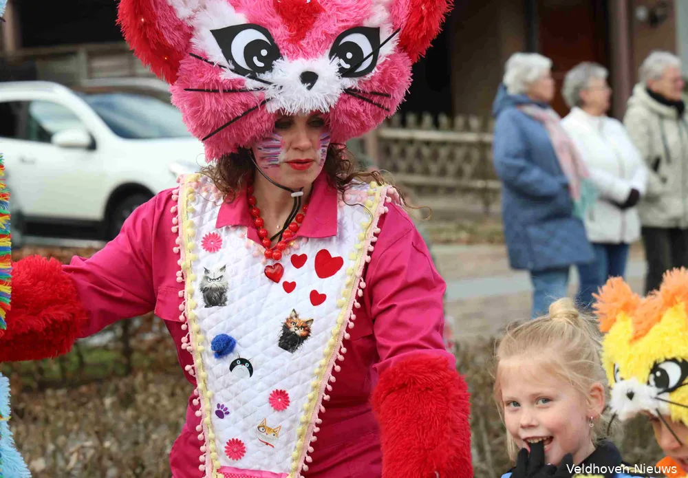 De carnavalsoptocht in Oerle was zaterdag koud, knus en kleinschalig. Onder de naam familieoptocht trokken vrolijk uitgedoste carnavalsliefhebbers van jong tot oud door het centrum.