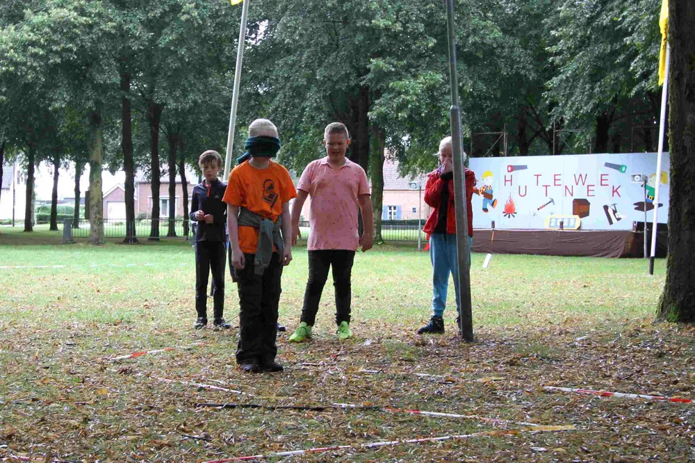 Onder een boom zit woensdag Daphne op haar knieën in het gras. Haar rug fungeert als tafeltje voor haar zus Veerle. Die schrijft een verhaal op papier waarin zo veel mogelijk keer de letter ‘r’ in moet voorkomen. De hele groep helpt mee. Na 8 minuten moet de groep het verhaal voorlezen aan vrijwilligster Veronique die het spel leidt. En zo waren er nog meer leuke en originele spellen bedacht voor de jeugd waarbij ze steeds in groepjes tegen elkaar speelden. De Huttenweek duurt nog tot en met vrijdagavond.