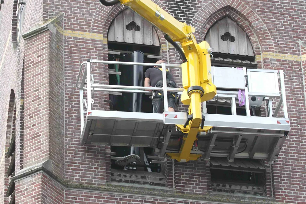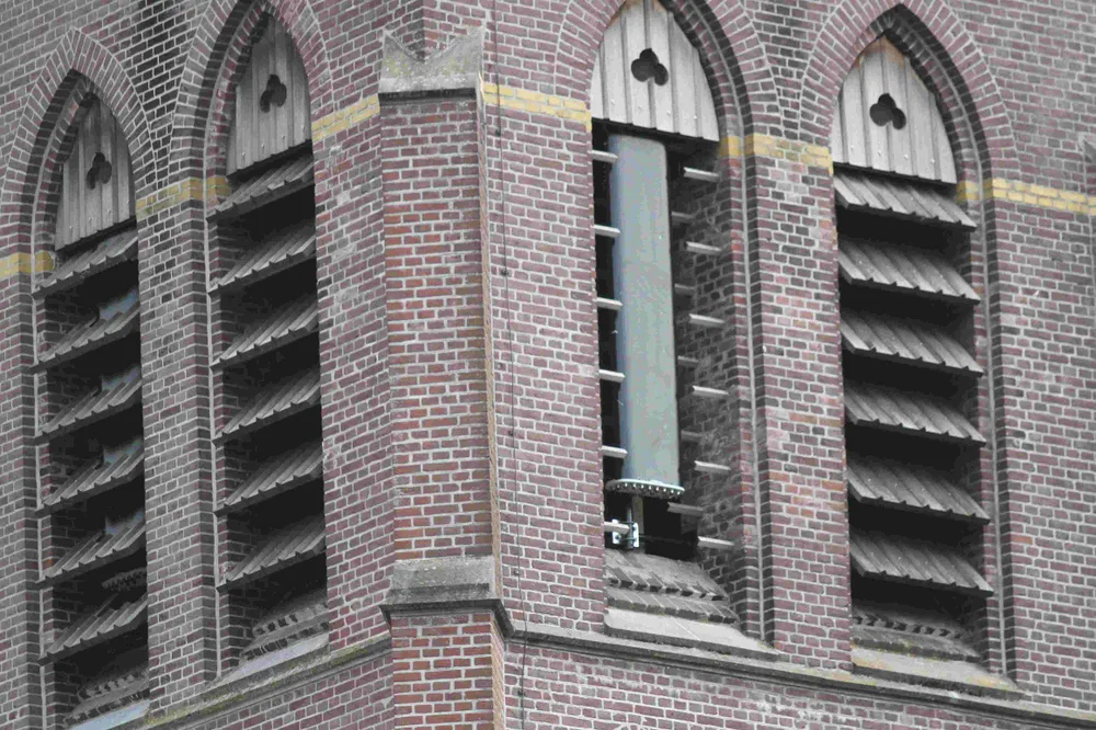 De voormalige St. Jan de Doperkerk wordt momenteel voorzien van zendmasten. De luiden daarvoor ruim een week niet.