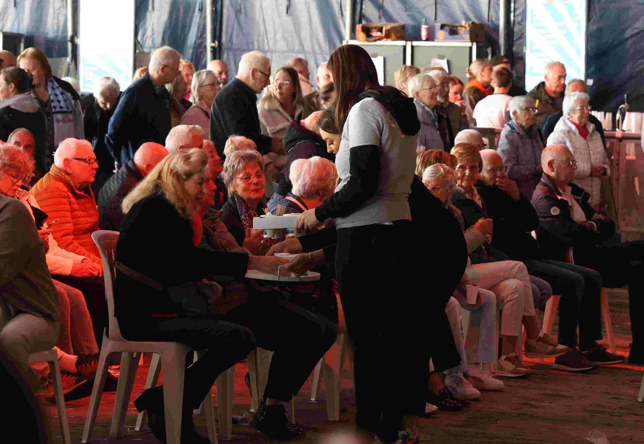Speciaal voor de senioren waren dit keer stoelen bij het podium geplaatst. De aanwezigen werden tijdens het optreden ook nog eens getrakteerd met koffie en cake. En de echte dansliefhebbers pakten hun kans op de dansvloer.