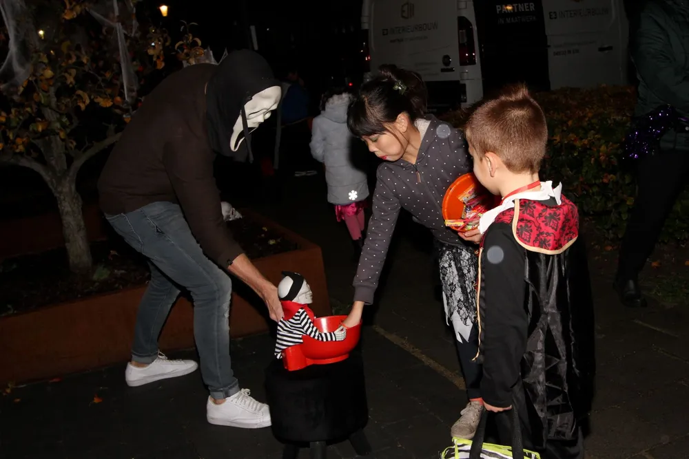 Bij de meeste deelnemende huizen stond een bakje of mandje met snoep. Waar aangebeld mocht worden, werd de zoetigheid aangereikt met bijvoorbeeld een visnetje. Rond 20.30 uur begon het wat te regenen, maar toen was bij het gros van de deelnemende huizen het aangeboden lekkers ook op. Gelukkig hadden de meeste kinderen hun mandje of emmertje toen al goed gevuld. De organisatie mag terugkijken op een geslaagd evenement.