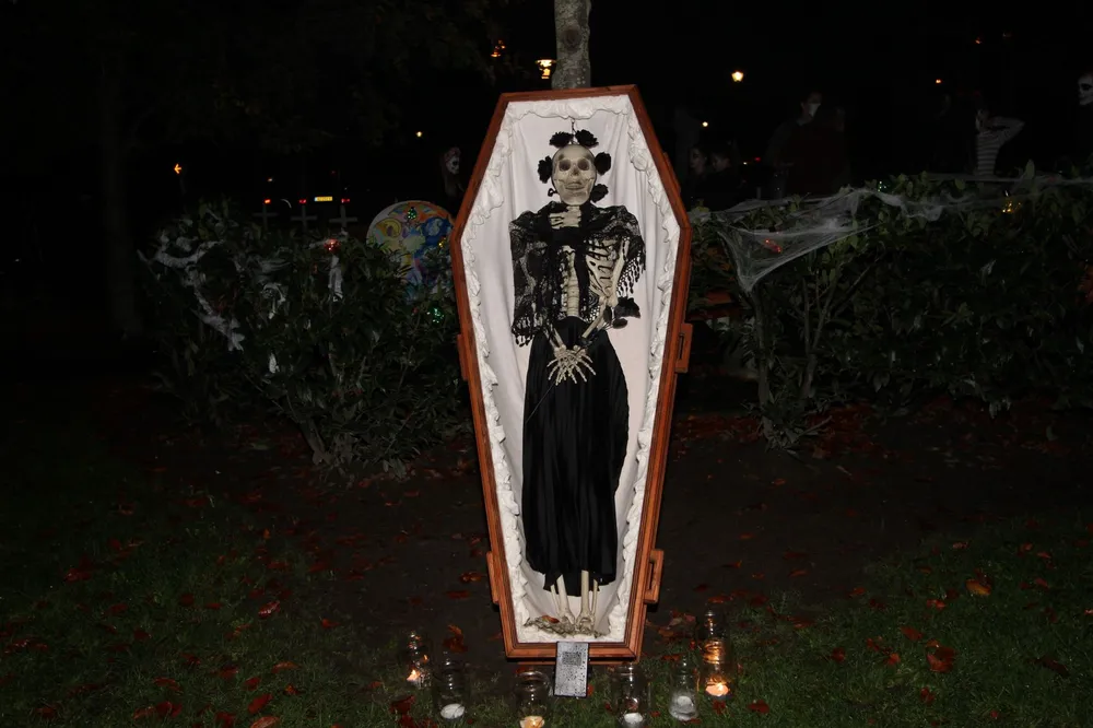 Halloween aan de Ree werd zaterdagavond goed bezocht. De organisatie had een coronaproof parcours uitgezet.