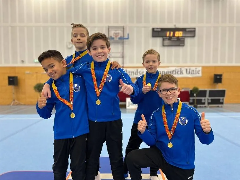 Keen van Voorwaarts turnde in Pupillen B samen met Teun, Duncan, Senn en Vince, jongens van Dynamo Roosendaal in één team. Ook zij deden het voortreffelijk. Terwijl ze in de najaarscompetitie van 2024 nog op een tweede plaats eindigden, mochten ze deze keer het hoogste podium betreden. Met een totaal van 286.10 punten. Keen had een flink aandeel in het behalen van deze gouden medaille. In het weekend van 15 en 16 februari zijn de volgende wedstrijden in Zierikzee. Het team Pupillen B zal daarna doorstromen naar de landelijke competitie. Dat gaat heel spannend worden voor deze kanjers. Gefeliciteerd met deze geweldige prestaties.